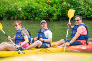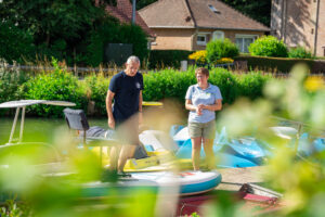 Plusieurs partenaires bien connus étaient présents pour offrir des expériences enrichissantes soulignant l’importance de l’engagement collectif. Virty SENS a proposé des activités nautiques virtuelles, les participants ont pu vivre des descentes en rafting, entre autres, tandis que le comité départemental 59 de Canoë-Kayak a mis à disposition son simulateur pour s’entraîner avant de se lancer sur l’eau. La présence de Yacine et Eugénie de la plateforme de répit des aidants FARAH a également ravi les visiteurs avec de délicieux smoothies. En plus de conseiller, informer et orienter les familles. La plateforme à pour missions de soutenir les aidants familiaux en proposant des solutions de répit et cela passe par des activités, des sorties et du soutien. La ligue de surf des hauts de France a amené du matériel adapté et très peu répandu. Les Personnes ont pu parcourir la lys sur des paddles divers et variés équipé d’une assise ou d’un fauteuil roulant cette innovation permet aux personnes à mobilité réduite de vivre cette expérience en duo. Le PADDLE géant de la base nautique a eu aussi son succès. Un PADDLE plus larges et plus stables pouvant accueillir une famille ou des groupes jusqu’à 8 personnes dans un seul but : pagayer ensemble !